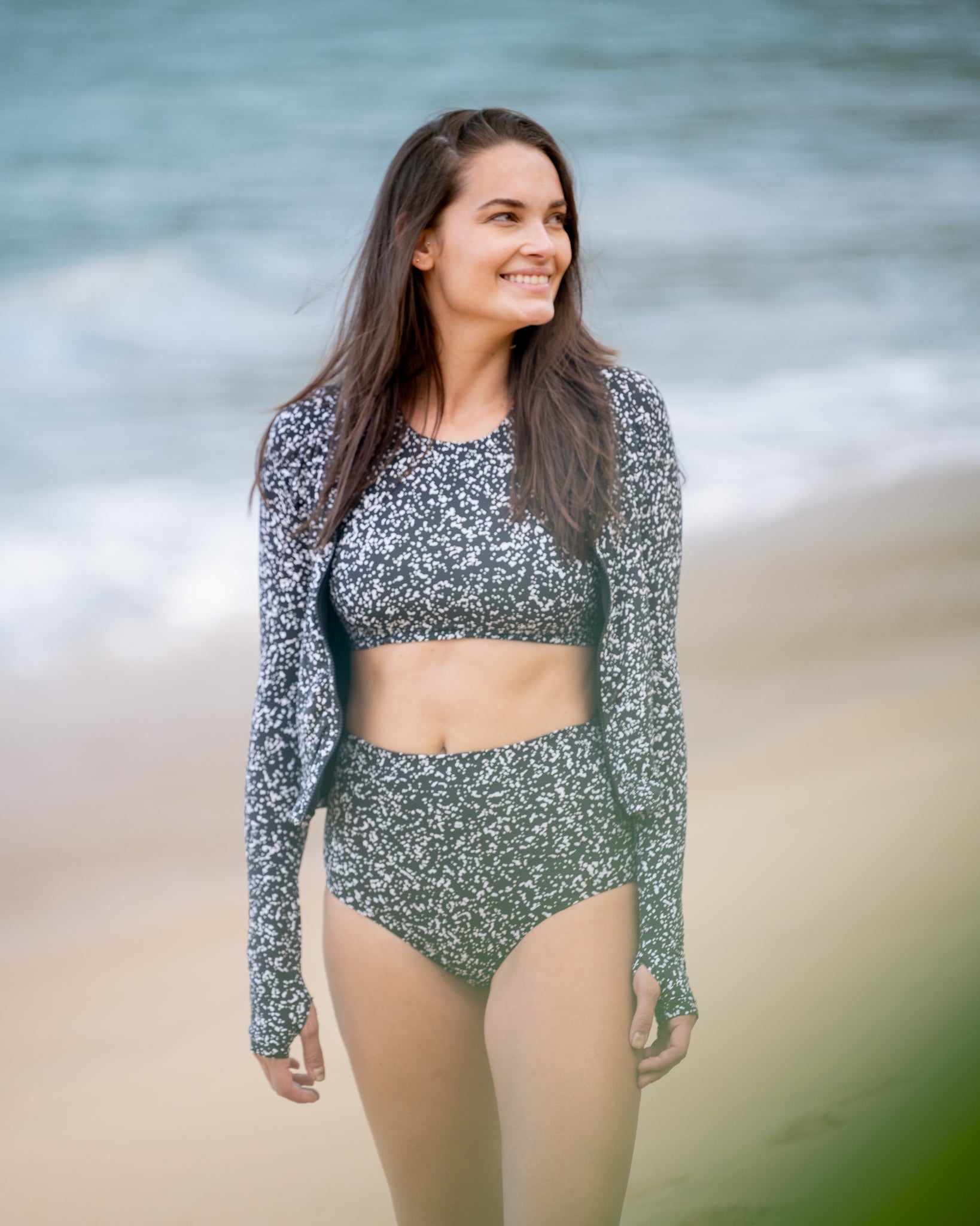 "Maya goes far beyond comfort and beauty. It's a piece with purpose! And that's why I love it 😍. It's perfect for the sea, the river, and my daily sports activities. With sun and environmental protection. More care for the planet and for ourselves."